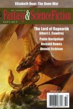 Im Mittelpunkt der September/ Oktober 2015 Ausgabe steht Albert E. Cowdreys Fantasy- Novelle „The Lord of Ragnarök“. Beginnend mit einer Rahmenerzählung beschreibt Cowdrey die Lebensgeschichte eines jungen in einfachen Verhältnissen aufgewachsenen Soldaten, der durch Verrat und Gegenverrat schließlich der Vertraute seines Lords wird. Dieser Herrscher verbürgt ein seltsames Geheimnis. Einmal im Jahr fährt er zu seinem Vater auf den versteckten Inseln und bringt Schätze mit. Bis dieser „Vater“ im Sterben liegt und sich die zumindest im Prolog angedeutete Wahrheit zeigt. Cowdrey ist grundsätzlich kein echter Fantasy Erzähler. Basierend auf den britischen Mythen mit einigen Hinweisen hat er eine kriegstechnisch grausame Farce geschrieben, in deren Verlauf der Leser leider auch durch die distanzierte und zu sehr wie ein Bericht erscheinende Erzählstruktur weniger angezogen als isoliert wird. Es ist grundsätzlich keine schlechte Geschichte. Die Figuren sind realistisch beschrieben, die Ereignisse laufen immer schneller ab und das unbeeinflussbare Schicksal scheint über allem zu stehen. Aber ohne eine Variierung des Erzähltempos; einem Einladen der Leser, das Geschehen unmittelbarer zu erleben, wirken viele Passagen auch ein wenig theatralisch überladen, zumal der sich abzeichnende, von Cory und Catska Enchs stimmungsvollen Titelbild niemals eingefangene Höhepunkt auch eher beiläufig abgewickelt, aber nicht aus vollem Herzen erzählt wird. Albert E. Cowdrey sollte die in dieser Hinsicht auch herausragenden Nacherzählungen nordischer Sagen von Poul Anderson noch einmal studieren.