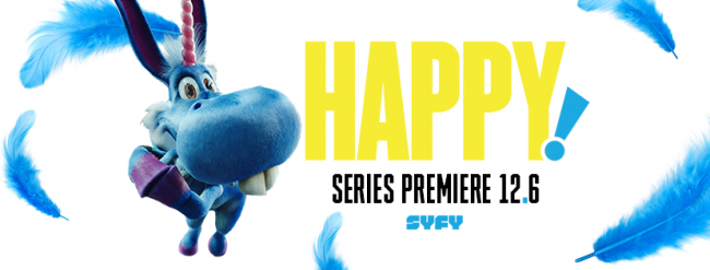 Happy! startet am 6. Dezember in den USA. Wann und wo die Serie in Deutschland zu sehen sein wird, ist noch nicht bekannt. Die deutsche Erstausgabe der Graphic Novel erschien im Juni 2014 im Panini Verlag.