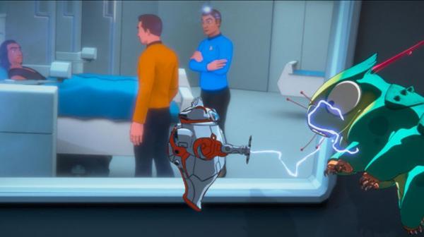 Alles vor einem recht spannenden Hintergrund: Mit William Shatners Stimme habe ich nicht gerechnet. Als das Tardigrade einen Eingang in die Enterprise sucht, kommt es an einer Luke vorbei durch die man Kirk und McCoy mit Khan in der Krankenstation sprechen sieht. Im Verlauf der Folge und der Jagd des Tardigrade hinter dem Schiff her quer durch Raum und Zeit begegnet man diversen Geschehnissen der Klassikserie.