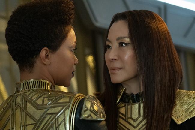 Georgiou hat nicht viel zu verlieren, also klettert sie durch Carls Kleiderschrank und landet zu ihrer Verwunderung als Imperatorin zurück im Spiegeluniversum, zeitlich kurz vor der Ankunft der Discovery beziehungsweise der Handlung der ersten Staffel.