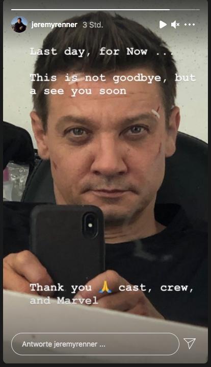 Der Startschuss zur Produktion von Hawkeye fiel im vergangenen Jahr. Nun verkündet Hauptdarsteller Jeremy Renner in seiner Instagram-Story dass der letzte Drehtag zur Produktion angebrochen ist. Er teilte einen Schnappschuss von sich und bedankte sich bei allen, die an den Dreharbeiten beteiligt waren.